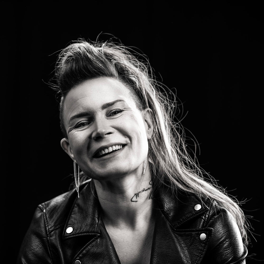Mi nombre es Jenni Ahtiainen y soy la creadora de DEAFMETAL®. DEAFMETAL® es una marca de accesorios para audífonos. Trabajo como diseñadora de moda desde hace 15 años. He vendido mis diseños a consumidores de Japón, Europa y Estados Unidos. También he diseñado vestuario escénico para bandas y músicos como Marilyn Manson, Snoop Dogg y Bono. Estas oportunidades han sido increíbles para un diseñador de moda finlandés al que le encanta escuchar música. Pero luego perdí la audición y quedé en shock. Y consiguió audífonos. Me hizo preguntarme... ¿por qué si tienes problemas de vista, puedes elegir cualquier tipo de anteojos que se adapten a tu estilo? Tienes algo sin importar si eres mujer, hombre, niño, rockero, hipster o incluso gótico. Sin embargo, si tiene problemas de audición, no tiene esa opción. Ni siquiera se puede ver una sola imagen hermosa de personas con problemas de audición en revistas de estilo de vida, moda o belleza. Bueno, no hasta ahora... comenzamos a tomar fotografías de belleza y fotografías artísticas de personas con problemas de audición para hacer que los problemas de audición sean más comunes y visuales. Cuando recibí mis audífonos, me los puse detrás de las orejas y comencé a pensar. Innové con una pequeña funda alrededor de los audífonos y luego colgué algunas tiras de cuero en la funda. De repente, los audífonos se sentían más como yo. Ellos se parecían a mí y yo me parecía a mí. Así nació DEAFMETAL®, de forma muy natural y orgánica, de la mano de un diseñador de moda con problemas de audición.