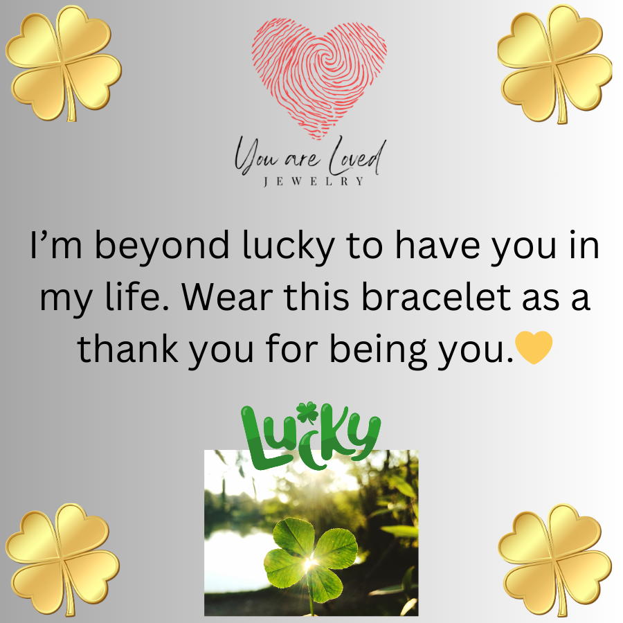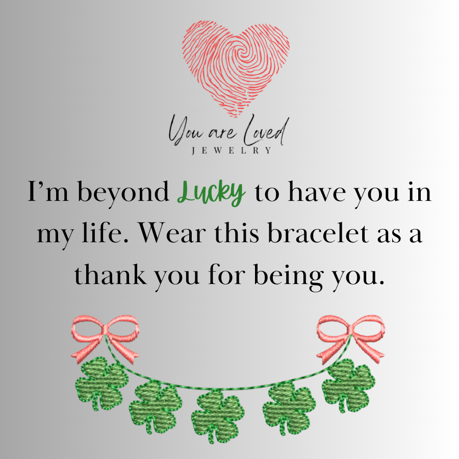 Each Amplify Love Bracelet comes with a "Lucky to Have You Sentiment Card."