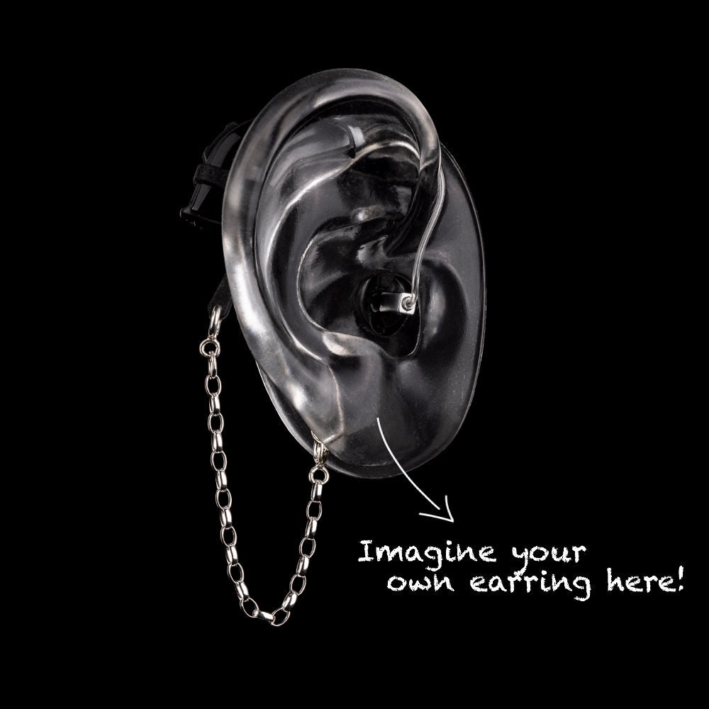 Beautiful silver oval patterned Deafmetal USA Safety Chain with a clasp on each end, used to turn your own earrings into jewelry. Simply attach one clasp to the earring back of your earring and the other to the Deafmetal USA holster (holster sold separately).
