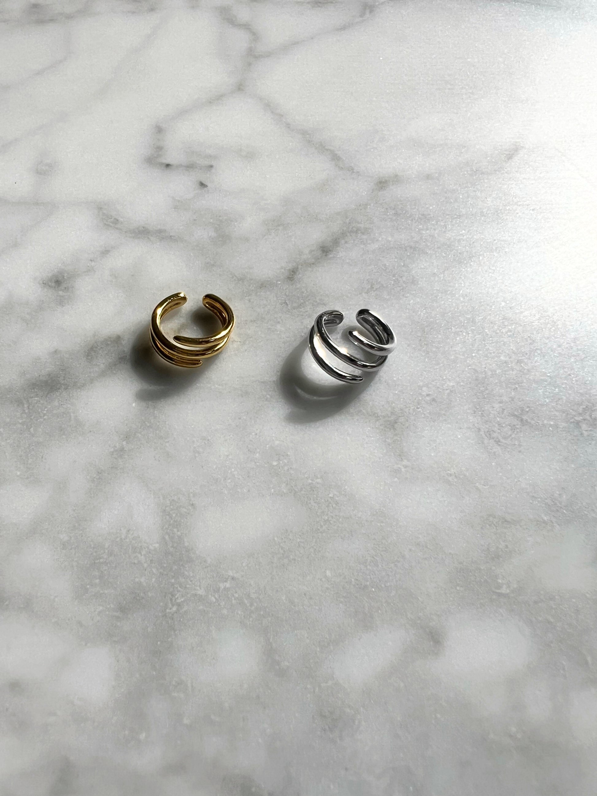 Our spiral 18k gold plated banded safety ring is the must-have hearing aid / cochlear implant accessory that keeps your device perfectly in place while adding a touch of effortless cool. Simply loop the safety ring through the hole in our silicone holster (sold separately) and then cuff to your ear. No piercing required.