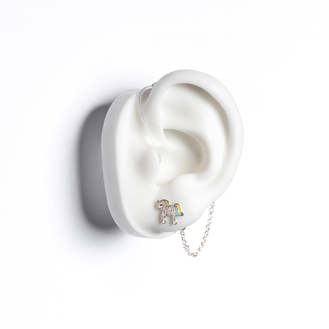 ✨ Add a little magic to your hearing devices with our Unicorn Deafmetal. Featuring a whimsical unicorn earring and a 5.5 cm chain that connects securely to the holster, this piece blends playful style with everyday protection. It’s sparkle + security in one! ✨